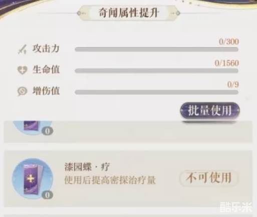 漆园蝶的道具是能针对密探属性来进行提升的,比如飞云的攻击、生命以及增伤这几个方面,可通过其来进行提升,根据飞云的定位,小编觉得可优先去提升攻击和生命,如果说队伍的输出足够了,那么生命优先一些,毕竟生命越高,意味着续航更加的持久。