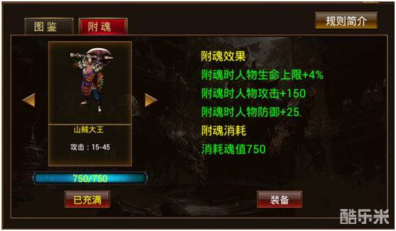 最低级的山贼大王在激活附魂后,属性还是相当不错的,大幅度的增加人物的生命上限,在游戏内可以很吃香的,不管是PK还是打BOSS能活下来才是胜利者!