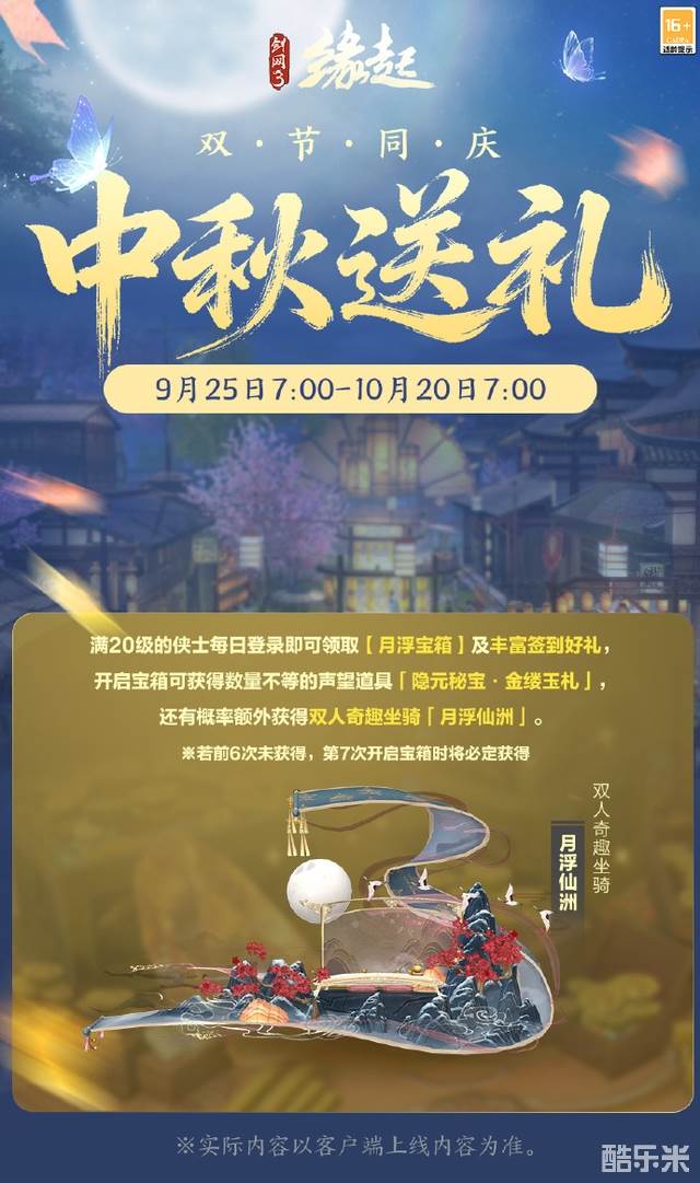 双节同庆,家国团圆,愿每一位侠士都能在这美好时节里,与亲友共话江湖,畅玩山河,中秋安康、国庆喜乐,事事圆满!