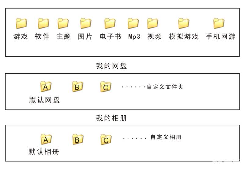 (1)与其他RayFile、115网盘、网易网盘、QQ网盘相同的功能,存储用户的文件,用户具有自己的默认网盘文件夹,也可以建立自定义文件夹,对文件进行分门别类。