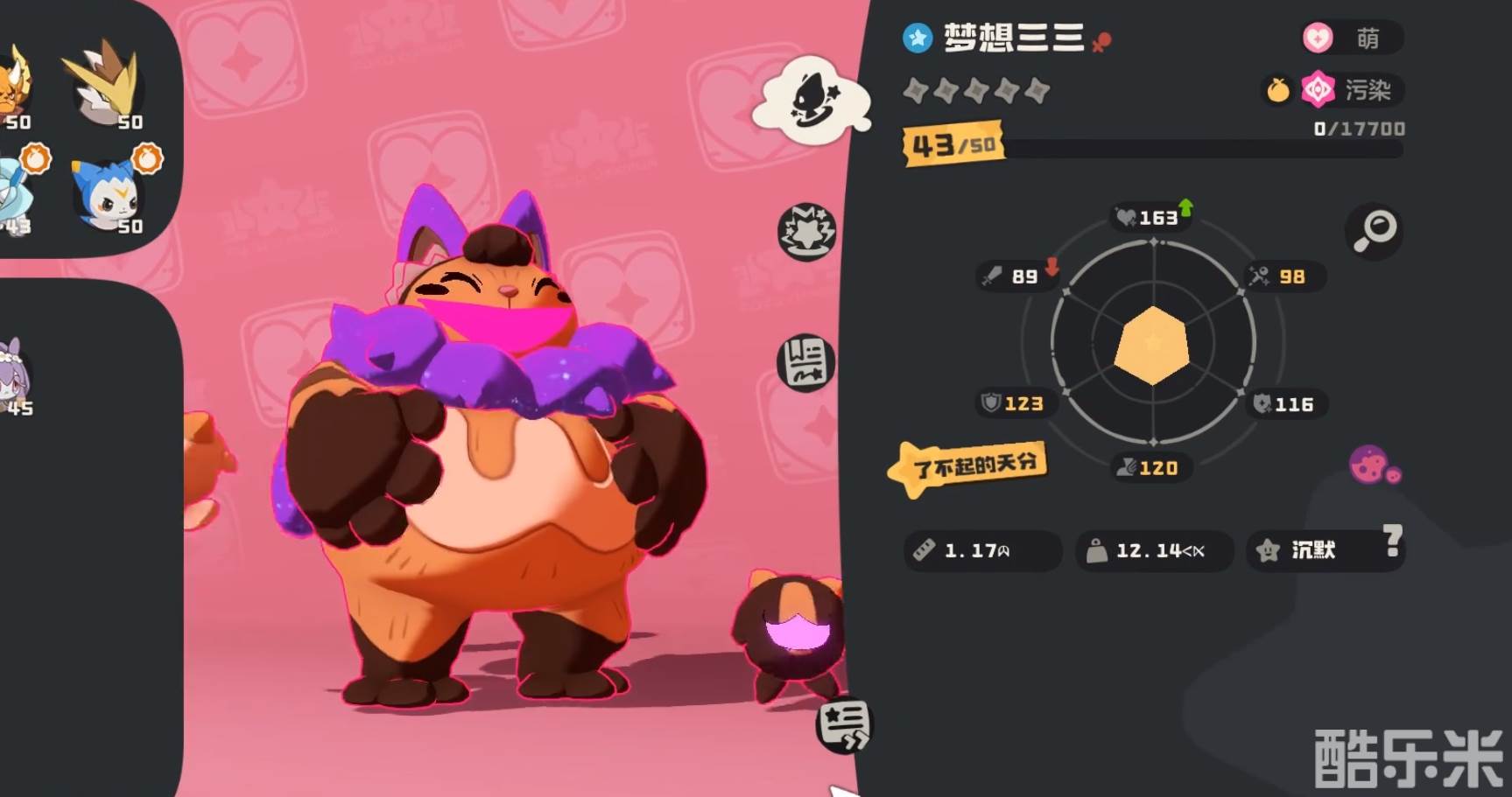 梦想三三:雪天队的核心永动机,主控制,选择首领形态进场。三三的特性“鼓气”在使用能耗为3的技能时可以永久提升10%的攻防能力,而且首领化之后该增益效果可以保留。技能选择“摇篮曲”和“赤子之心”,能耗都为3,“摇篮曲”睡眠控场神技,只要不被打断就可以无限使用,直到对手换宠浪费回合;“赤子之心”拥有回血+回蓝的效果,这两技能就是永动机在世,可以实现永劫循环。