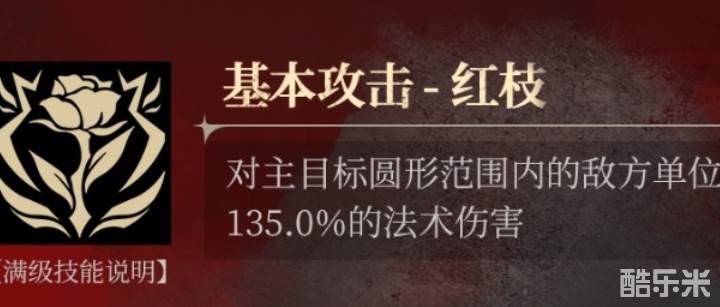 在游戏中它是一个拥有着绯花少女称号的角色,游戏中,他可以来施展自己的奥义技能,强度是非常高的,叫做一束落尽归尘,在实战的过程中,可以来释放光芒,光芒持续的时间为四秒钟左右,可以来对周围的目标造成3.5米的范围内伤害,还可以给随机的一位敌人造成巨大的法术伤害,每秒钟时间的伤害都会100%的提高,他的攻击能力,这个技能也是提升之后最大的一个伤害技能。下面和酷乐米小编一起来看看吧