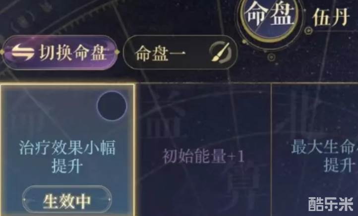 大家可以看到基本上都是提升她的治疗效果以及生命数值的,不过只有在四会宫位置上的加成效果才有用,如果小伙伴们想要的效果并不在上面,后续到达30级可以通过逆天改命,改成自己想要的星盘状态。推荐命宫、中天、天关、上生,能够提升伍丹的治疗效果还有生命血条。