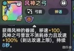 4、获得风神的眷顾移速+100风神之弓普攻不消耗体力且攻速+100%(到达攻速上限),持续8秒。