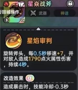 1、【火斧】星焱战斧,(优先)改造α-暴击火斧。