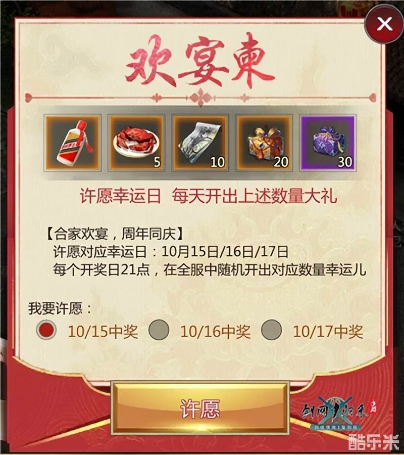 活动期间,大侠每天登录游戏可获得合家欢宴锦盒,开启可获得欢宴柬和随机奖励,将欢宴柬投入中奖日就有可能在当日收获惊喜,听说投入的欢宴柬越多,中奖概率越大哦!飞天茅台、大闸蟹、周边大礼包、黄金图谱礼盒·顺时、大包护脉丹、月卡、金币等丰厚奖励,大侠快来参加呀。