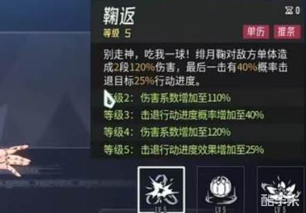 作为控制型的角色,他对敌方的输出节奏有着很强的打断能力,并且本身的大招还可以对对方附加减益buff,他的被动效果也是极其的大的影响范围,在实战中这个角色还是很值得玩家们注意的,首先我们了解一下绯月鞠的第一技能鞠返,可以对单体对象造成伤害并且还可以直接削减对方的行动条,让对方输出的力度大大降低,在对局中这一小小的削减行动条可能对对局中带来不可估量的影响,是一个很不错的技能。