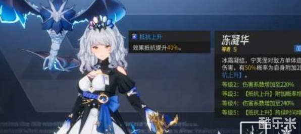 宁芙涅的技能包含普通攻击、群体回复与大招三类,不同技能的定位与使用场景存在明确差异,普通攻击名为冻凝华,以冰霜元素为基础,对敌方单体造成伤害的同时,有概率为自身附加抵抗上升状态,该状态可持续数回合,从技能优先级来看,副本对战场景中由于普通攻击伤害有限,且并非团队核心需求,通常无需投入技能点,而在竞技对战中当技能等级提升至特定阶段后,可解锁速度提升效果,对于需要争夺出手顺序的竞技环境,该效果能帮助宁芙涅更早施加团队增益,此时可根据技能点储备酌情提升等级。