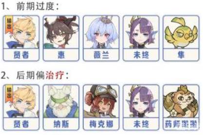 2、后期偏治疗:贤者+纳斯+梅克娜+未终+药师獭獭
