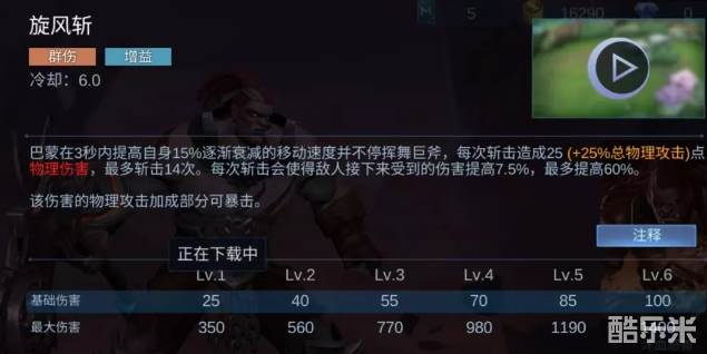 通过这些技能效果我们就已经搞清楚了,巴蒙的主要战斗方式和技能加点顺序。在一级时候先学习一技能,接下来主加二技能旋风斩,可以在线上对敌方进行有效消耗,再利用自己的被动回血,这样可以建立起血量上的优势。大招虽然是爆发性技能,但是一般留到最后使用,在实战中连招方面,先利用一技能位移直接冲向对方后排,而后开启二技能旋风斩,找到对方血量较低的开启大招收割。