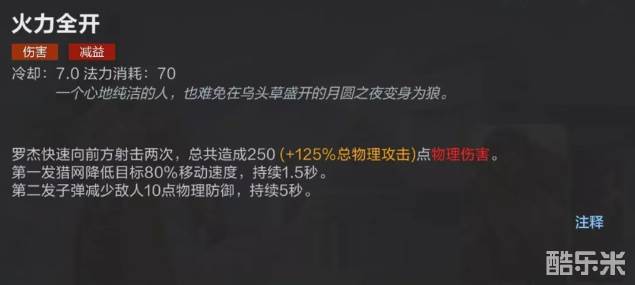 罗杰是决胜巅峰中比较特殊的一名英雄,自身可以在射手和战士两个位置间切换,擅长终结和爆发,使用的武器也很独特,是一把威力巨大的多管枪械,号称魔狼猎人,下面和酷乐米小编一起来看看吧
