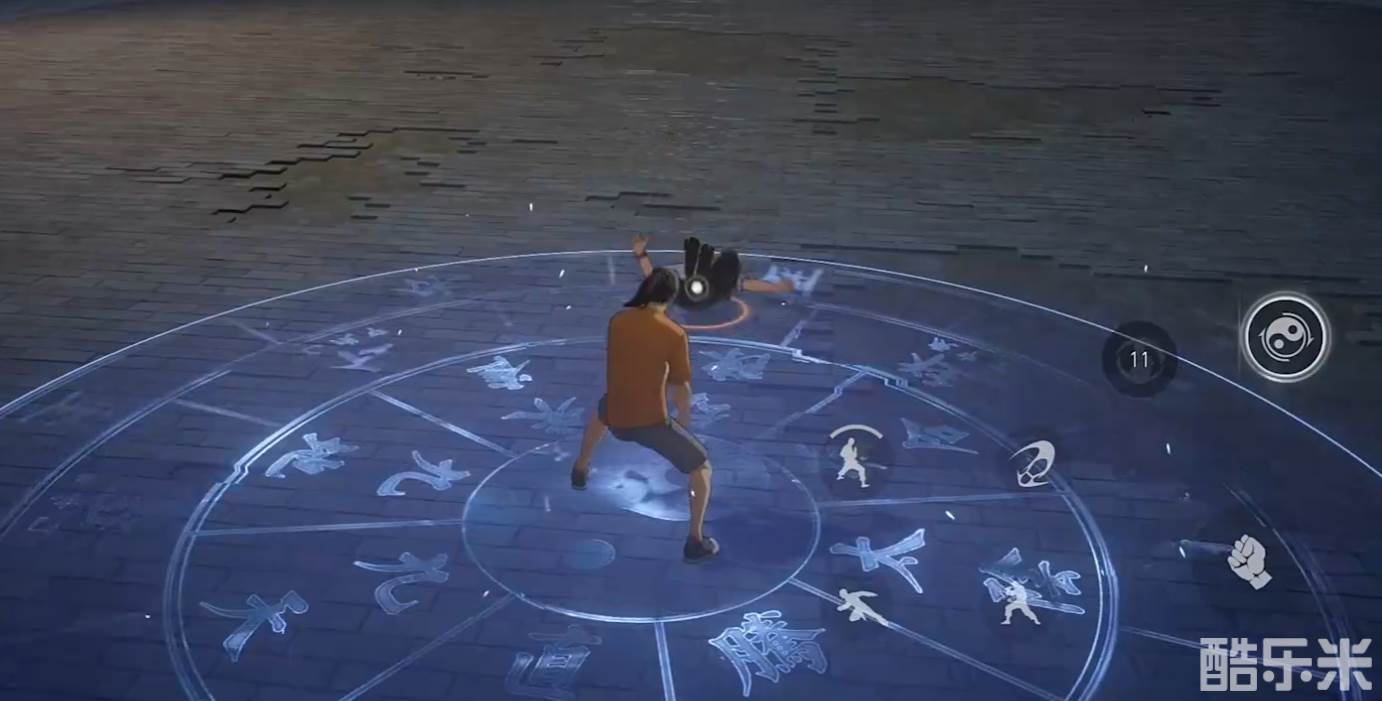 他的“震离”会拨动手中的四盘,让自己处于奇门中最合理的位置,随后可以选择施展出三种不同属性的术法,第1种是抛出火焰凝聚在地面上,火焰会在数秒后消失若再消失前被触碰到会立刻引爆,这个还可以用来命中已经倒地的敌人,并且用“回沙踏”的最后一击前,若附近有自己释放出的火焰,会将其吸入掌中将踢击变成更强的险招。
