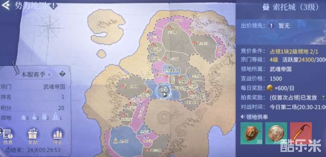 在参与宗门领地战时,玩家还需要加入一个比较强大的宗门。宗门的等级还有活跃度是比较重要的,例如索托城这类三级的区域竞价的条件就要求占领一块二级领地,并且玩家的宗门等级也需要达到四级。只有满足这些条件,才有资格去参加争夺。在进入到领地之前,玩家就需要做好全面的准备,例如可以提升个人的修为,要想提升修为主要是通过主线剧情还有日常任务,可以在战斗的过程中更有优势。