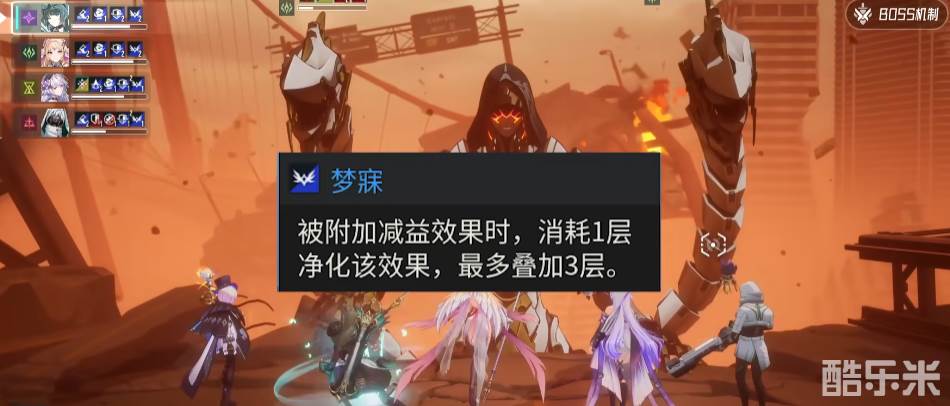 队友在被梦寐的状态覆盖之后,她每一次被额外增加其他增益效果的时候,自身都会带来行动进度上面的加成,这里行动进度会根据梦寐的效果提升4%的数值,而敌人身上只要是被附加了减易效果的话,那么还有70%的概率会击退他4%的行动进度,而这个效果是每一个回合里面最多只能用到3次的,所以芙蕾雅被附加了增益效果的话,也附加了减益效果,就可以触发双倍的一个梦魇效果,因为这个梦魇效果其实是第二段有概率触发的,这里的概率达到了30%,也同样是可以给目标增加两回合的梦魇,所以她在这个普攻上面额外带来的效果就是一个增益。
