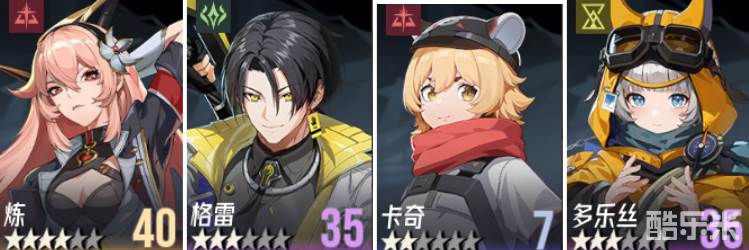 格雷+卡奇+多乐丝+炼这4个角色,目前这4个角色都是新手时期可以直接获取的,都是新手赠送可以拿到的角色,而且其中的炼和格雷就是主要的输出角色,这两个也是一多玩家在新手时期会优先选择使用的角色,卡奇的话,在游戏中本身具有拉掉的能力,所以在这里放在辅助位置上用。