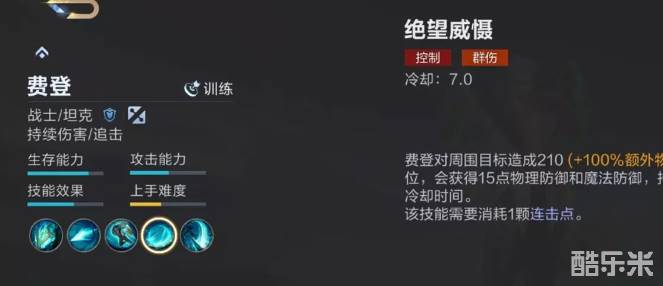 费登出生于人类世界中的阿杰尔塔罪恶之城,是决胜巅峰中的一名坦克角色,在生存能力、攻击、控制等方面较为均衡,现在很多玩家都在问决胜巅峰费登技能好用吗。这名角色目前出场的机会比较少,因为还有很多玩家没有解锁,下面和酷乐米小编一起来看看吧