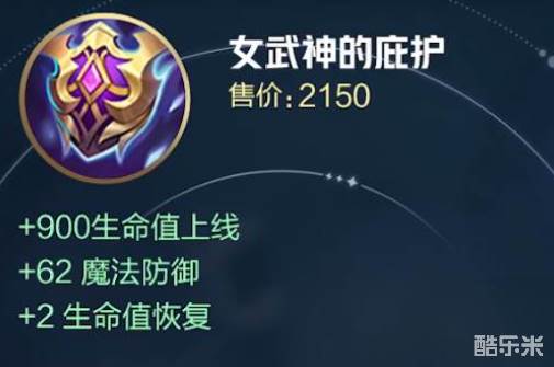 当对手的魔法伤害很高时,就需要补充一件魔法防御装。这里更推荐使用女武神的庇护,用了它之后,则可增加生命以及魔法防御。当你受到魔法伤害时,还可降低受到的魔法伤害。脱战之后,则可重复获得防御效果。