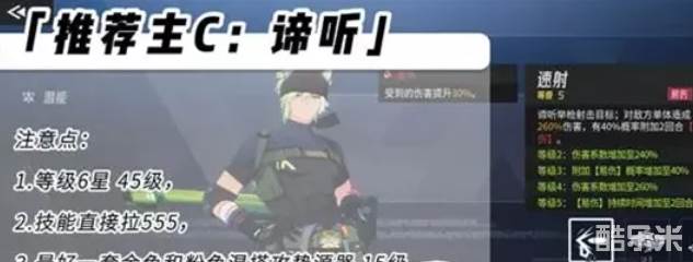 首先是对谛听的技能的养成,需要尽快养成到555,至少也要335,这样才能在打噩梦菲彼安中有强度,其次在重置炼之后,我们需要养第二个光暗主C,比如夜离、莉拉姆或者弥瑟亚,书生这边是夜离和莉拉姆,因为国服这时候可能还没有夜离,如果有的话,换成夜离也是非常好的,这三个光暗主C 都能用很久,泛用性很广。