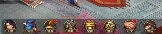 先点击游戏主界面左上方的角色头像,这时游戏主界面下方会弹出菜单栏,再点击菜单栏中的“灵兽”,然后点击“成长”选项卡,即可查看成长界面。