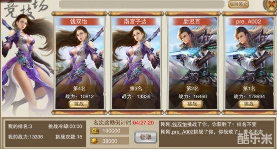 1、在竞技场中,玩家可挑战其他玩家。挑战成功或失败,都会获得相应的挑战奖励。