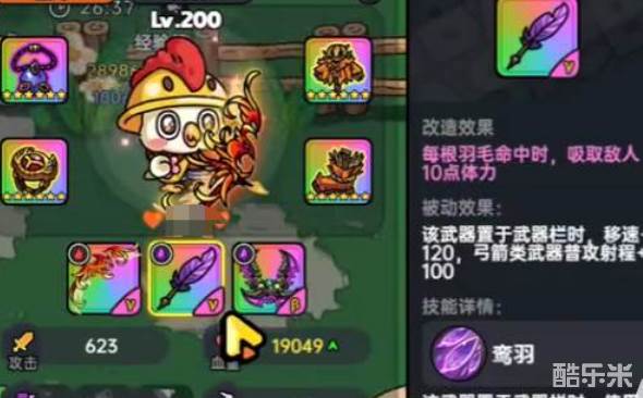 每只羽毛都会让对手受到二百五十点的固定伤害,而且还会附加直接减少对方3%生命值的毒属性伤害,用来打一些坦克类型的怪物或者对手特别好用,另外它的冷却只有3秒,它的额外效果便是屠戮boss的杀手锏。