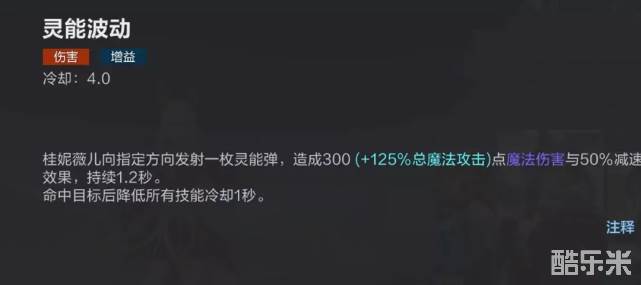 桂妮薇儿擅长爆发输出,能够打出法术伤害,对击飞目标可以造成更多输出,在多次对敌人造成伤害后,会强化下一次普通攻击,追击敌人并且回复自身血量。一技能使用后向前方发射一枚灵能弹,造成伤害及减速效果,此技能命中后会对所有技能冷却时间进行缩短。二技能指定圆形区域释放,将范围内敌人击飞,再次点击使用可以向指定方向进行一次位移,并在原地留下影子,该影子在一段时间后自动爆炸造成伤害。
