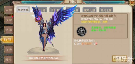 1、达到指定等级并消耗对应道具,即可开启仙羽。