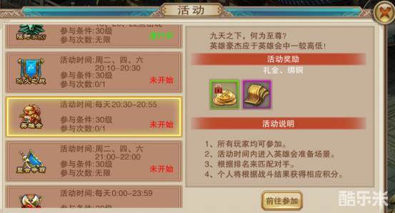 在活动列表中找到武道会,并点击前往参加。