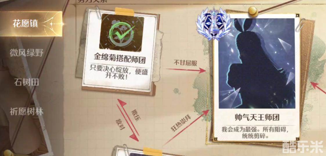 搭配势力需要先去挑战最下面的成员,然后才能解锁搭配天王