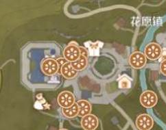 1、我们需要打开地图选择前往花愿镇,来到花愿镇的纪念山地。