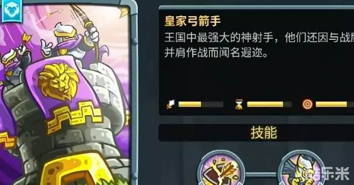 介绍的第一个防御塔便是弓箭手,这个也是大家非常熟悉的防御塔了,此塔在第一关的时候便可以获取到,它本身的能力可以说是中规中矩,即使在中后期的关卡里面它也可以给我们带来相当大的助力。这个箭塔自身所需要的价格不是很高,它自身的技能有两个,首先第一个是破甲射击,箭塔将会射出三箭强化箭,这个可以造成38点左右的物理伤害,在攻击的时候会无视敌人20%的护甲。