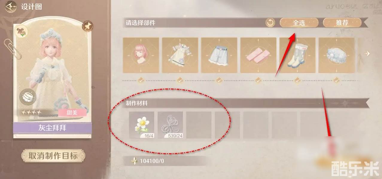 2、点击“全光恩选”,准备足够的制作材料,点击“一键制作”。