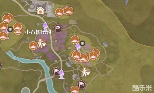 2、如果没有解锁,花伞藤萝分布在小石树村,位置如下图所示: