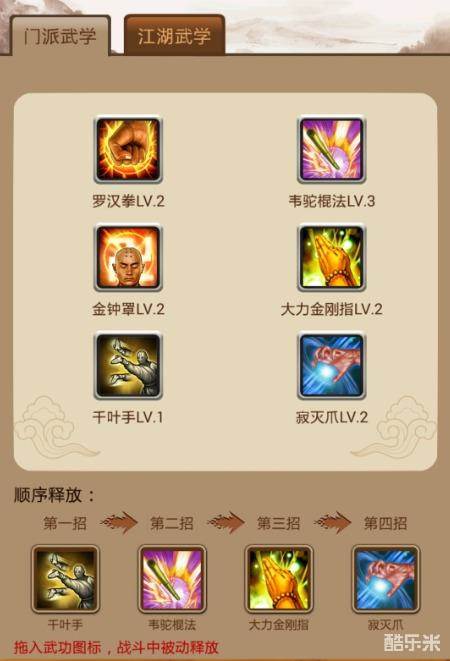 每一个武功都是其相应的搭配武功,好的武功搭配大大提高你的屠杀能力!!!现在想想最好的武功搭配就是可控,可攻,可防,可回复了!究竟如何才能搭配这样的武功呢?这个还需要各位去慢慢研究了……目前小编还没有研究出来~~~~