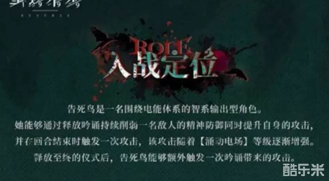 新角色告死鸟定位为电能单体C,具备独立成型的完整机制与较强的自我增益。部分玩家不清楚这名新角色是否值得抽取,下面和酷乐米小编一起来看看吧