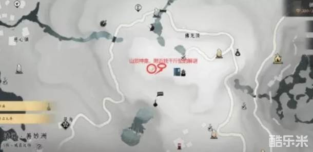 2、然后我们前往山顶神龛,在那附近找到千斤坠进行解谜,获得绣着祟字的奇怪钱袋;