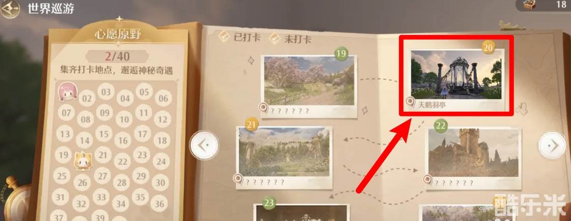 无限暖暖世界巡游20号拍照打卡点在哪?世界巡游一共有40个地点需要拍照打卡,其中二十号拍照打卡点在天鹅羽亭,下面酷乐米小编给大家带来的《无限暖暖》世界巡游20号拍照打卡点位置,感兴趣的小伙伴们一起来看看吧。