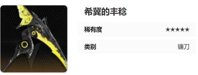 当前版本中的镰刀武器只有两把,分别是希冀的丰焾和赤腥镰刀,希冀的丰焾是一把五星品质的近战类型武器,武器的伤害方式为切割。下面和酷乐米小编一起来看看吧