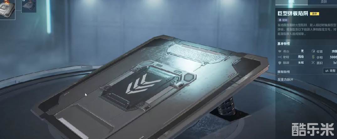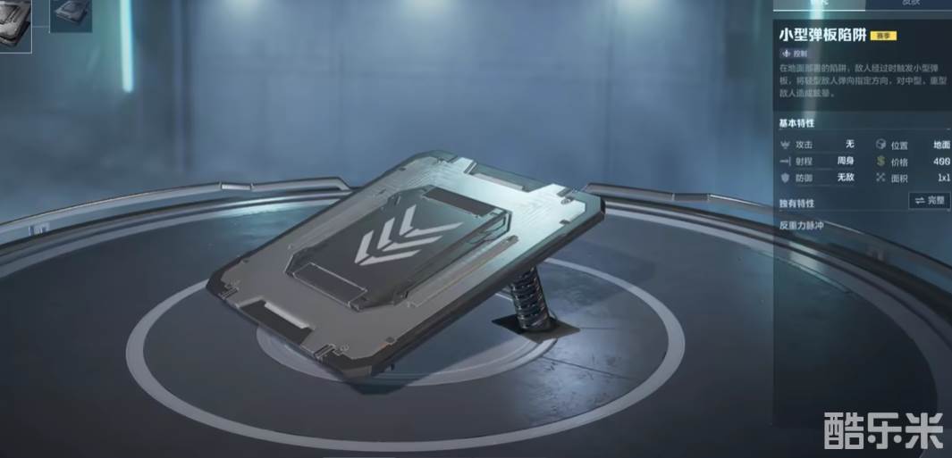 巨型弹板陷阱是一种控制类型的陷阱,在地面上布置上巨型弹板陷阱以后,一旦有敌人从陷阱上经过,陷阱上的巨型弹板就会被触发,可以直接将重型及以下敌人都给弹到指定的方向,对于超重型的对人还能造成眩晕的效果,巨型弹板陷阱还有个独特的特性-反重力脉冲,充能以后可以直接发动反重力脉冲,将自身周围的所有的怪物都给弹射计费,怪物被击飞的距离和怪物的身形相关,体型越小的怪物被击飞的越远,若是已经超过了一定提醒的话,则没办法击飞。