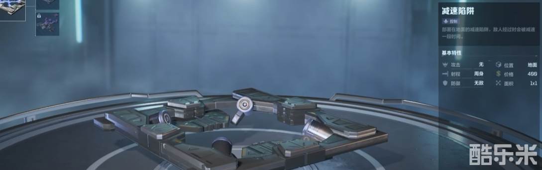 减速陷阱也是控制类的陷阱,陷阱在部署到地面以后,滴露只要踩到陷阱上面就会触发减速效果,敌人就会被减速一旦时间。