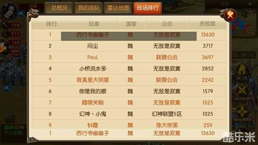 国战游戏,最重要的就是听指挥。一个人翻不起啥大浪,国众团结才是王道。