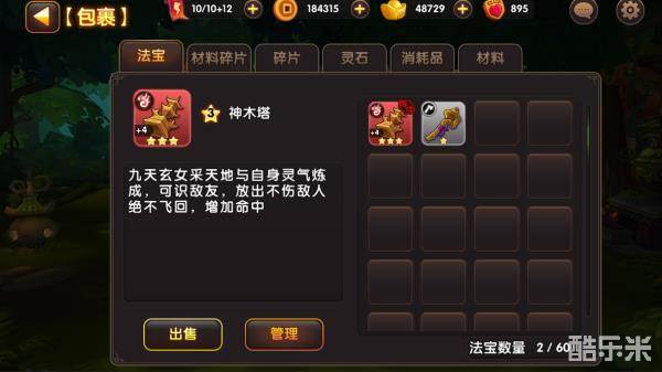 为了方便玩家在游戏时更好的使用该功能,故在背包中添加人性化的设计,背包中拥有道具的分类页签为您轻松打点您的游戏生活。此外背包格数有限60个,请玩家及时来清理您的包裹!