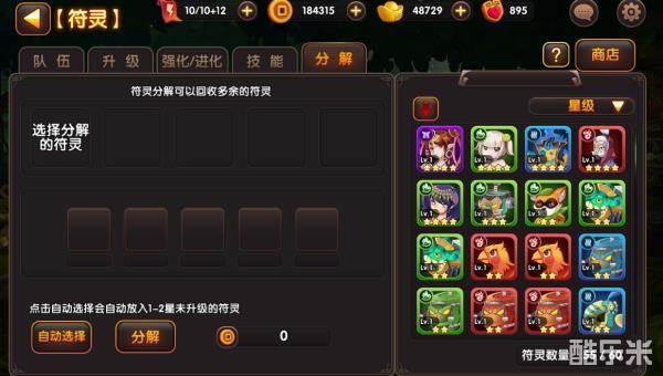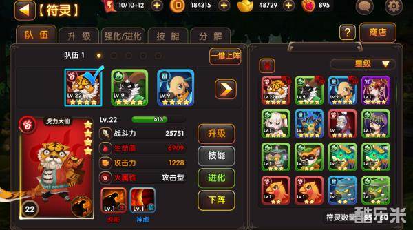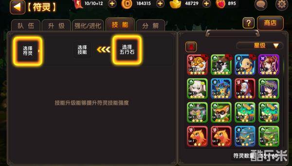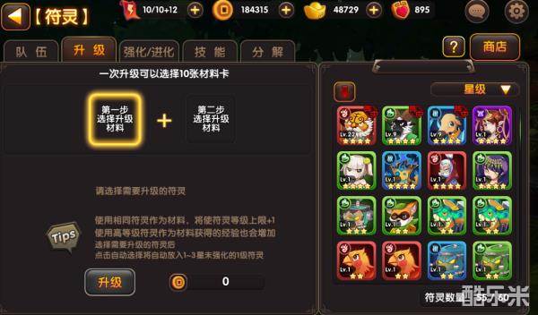 灵将系统分为:强化、进化、升级、技能、分解等玩法。