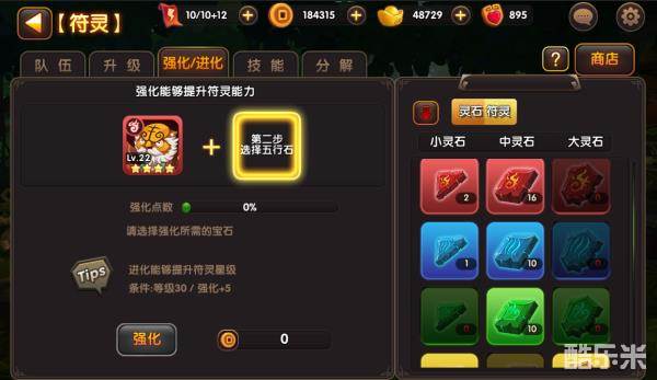 选择需要强化的宠物,使用宝石即可帮助宠物强化,但宠物需要升级至30级满级才可以进行强化。强化等级到达=5状态,即可为宠物升星,也就是进化。