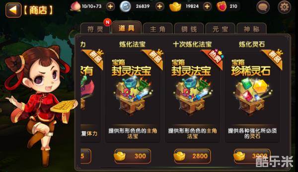 商店内出售各类道具,包含:十连抽、游戏道具、和元宝,当然还有神秘商店哦!