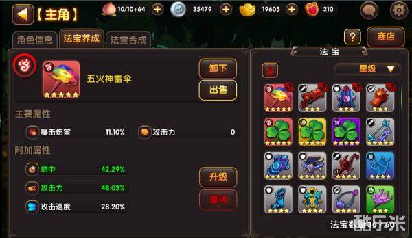 升级:每个神器都有对应的强化次数上限,每次强化使得强化等级+1并对应基础属性加成,
