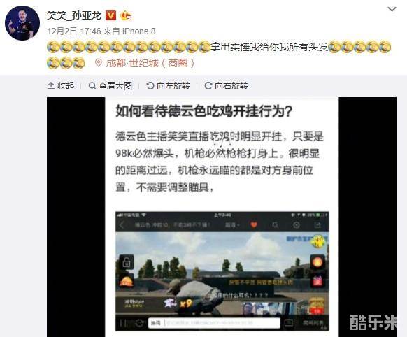 LOL笑笑回应《绝地求生》开挂质疑:拿出实锤我给你所有头发
