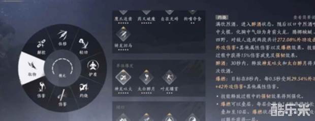 醉酒状态(30秒持续)下释放为快火,出手快、判定强;