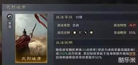 组合思路:孙坚的【武烈破虏】可以对统率低于自己的目标施加“震慑”,而【运筹帷幄】可以降低敌军的所有属性,从而让敌军更容易受到“震慑”效果。