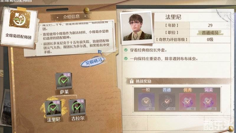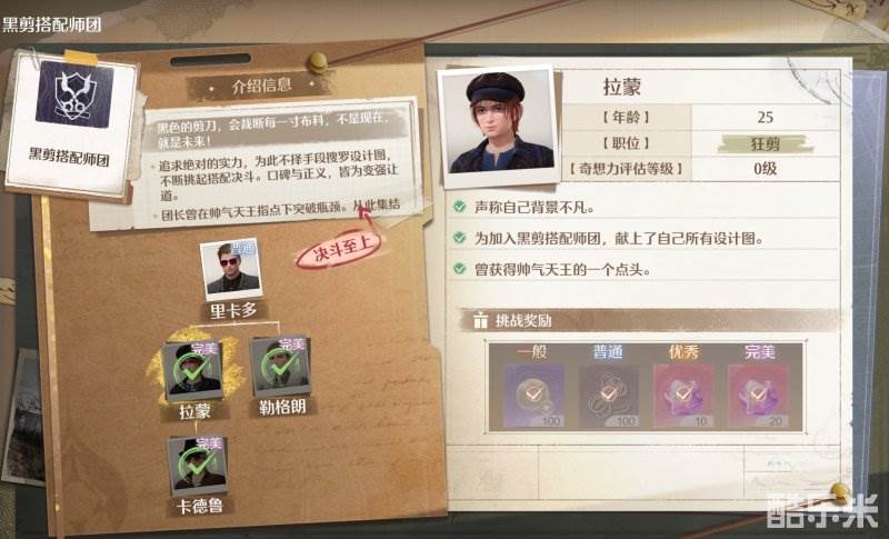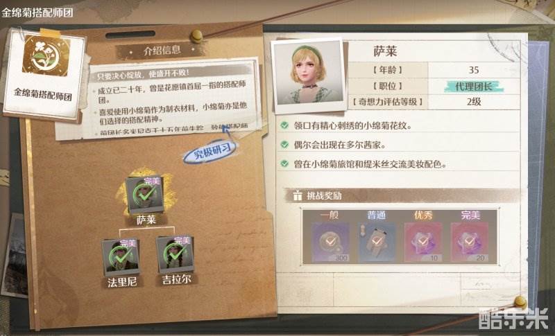 我们初期主要的挑战目标和势力是“金绵菊搭配师团”和“黑剪搭配师团”。其中前者比较容易,基本靠游戏初期白嫖的套装随便搭配一下就能通关。挑战团长的时候,如果分数不够,也可以通过祝福闪光升级和服装焕新升级以达到完美评分。